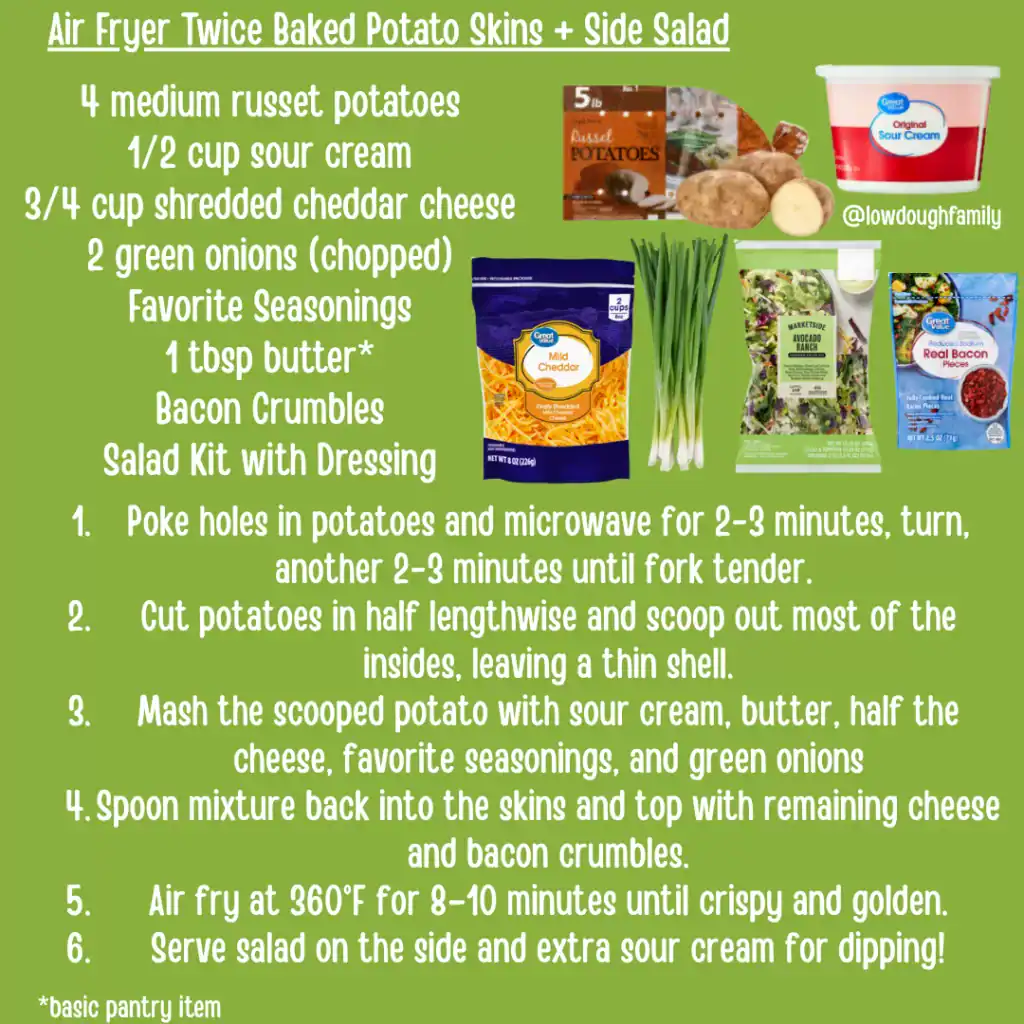 Air Fryer Twice Baked Potato Skins + Side Salad