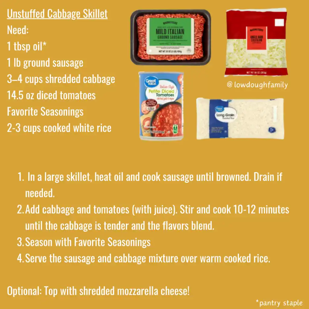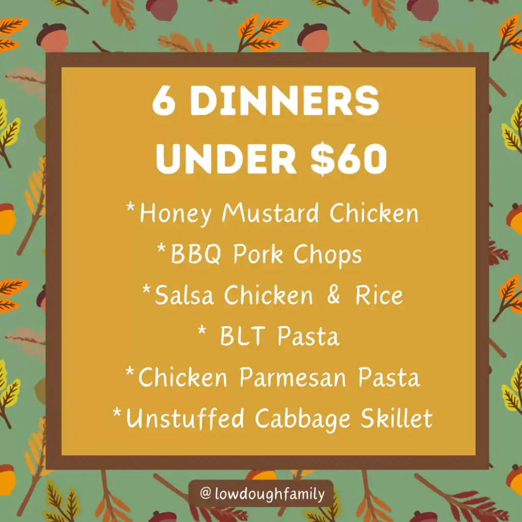 *Join our Low Dough Facebook Page where we post new menus every Saturday and new meal ideas every Wednesday!