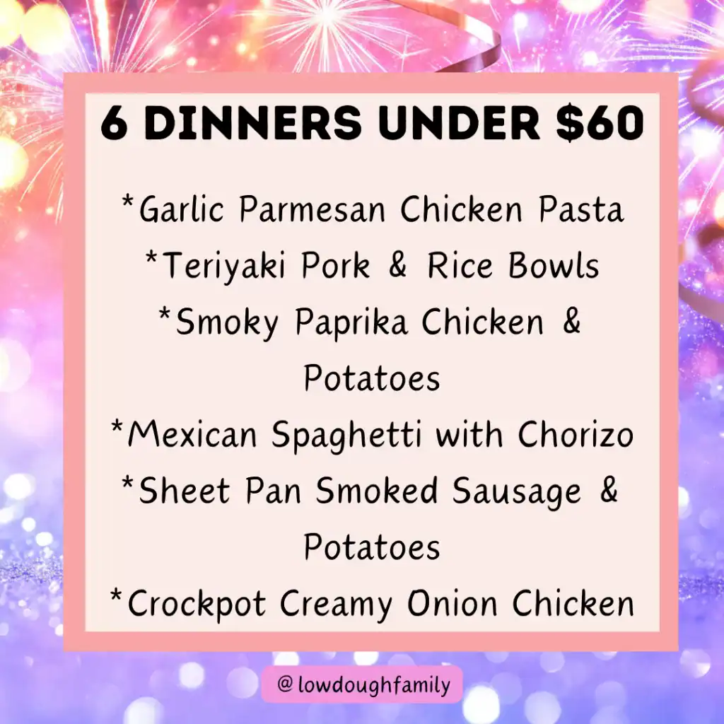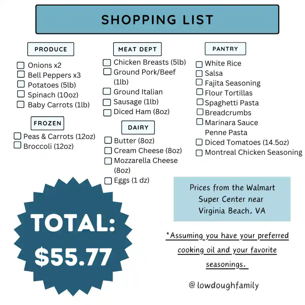 *Join our Low Dough Facebook Page where we post new menus every Saturday and new meal ideas every Wednesday!