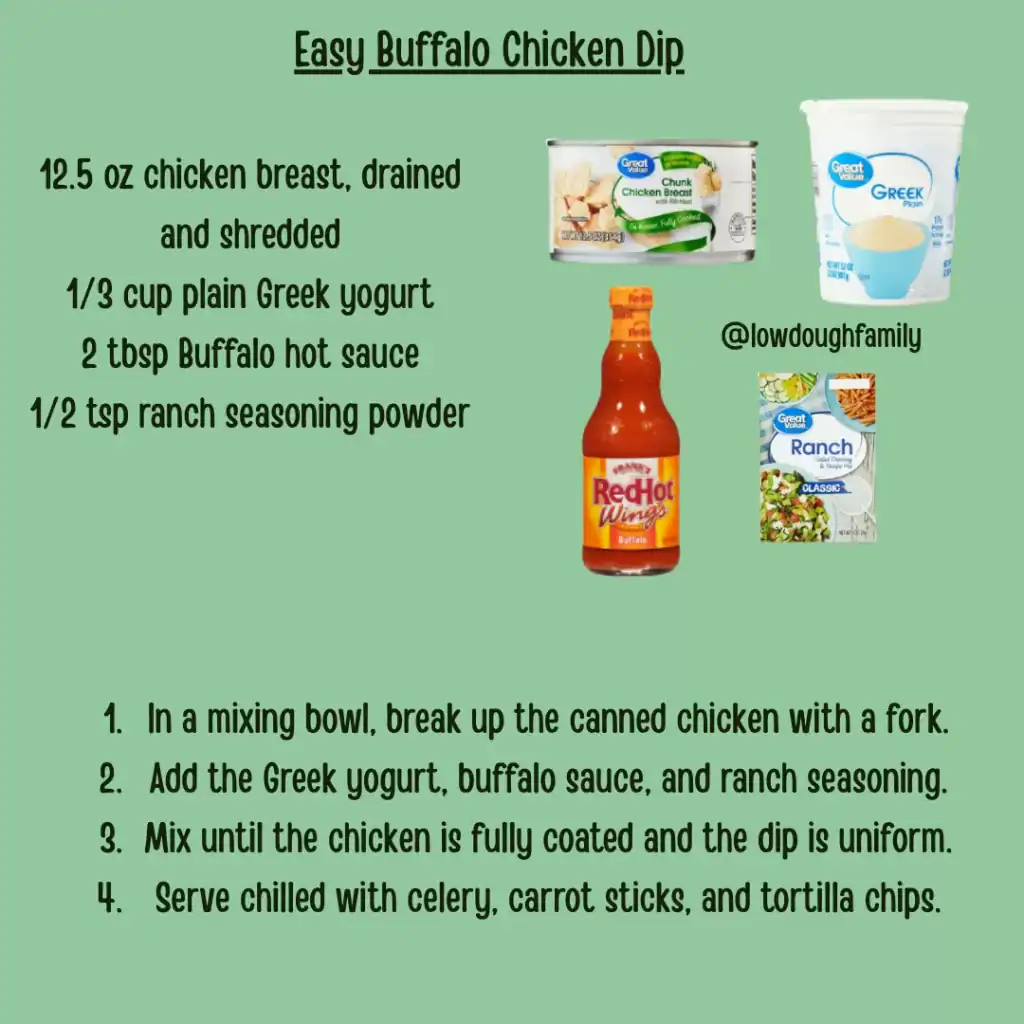 Using canned chicken makes this a high-protein lunch that is ready in seconds and tastes just like buffalo wings. You can swap the buffalo sauce for BBQ sauce for a sweet and smoky variation.