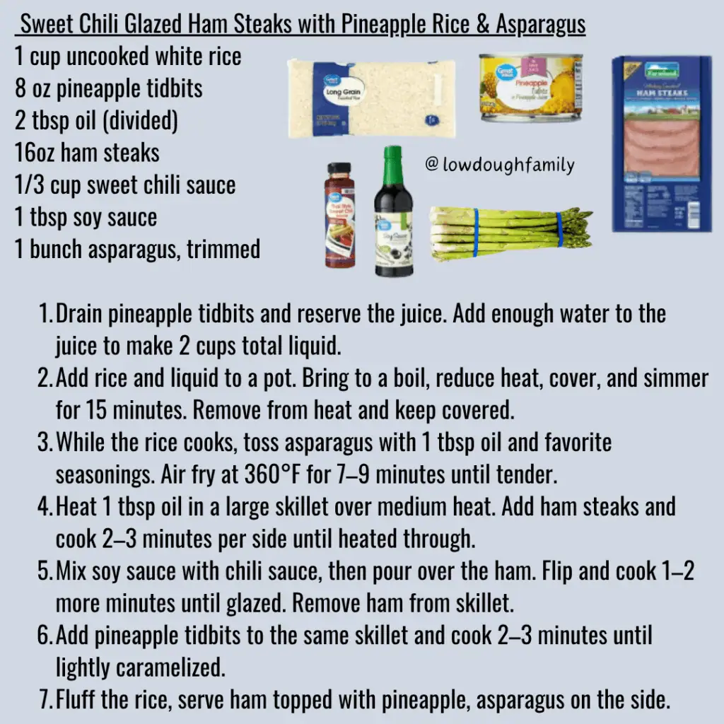 Sweet Chili Glazed Ham Steaks with Pineapple Rice & Asparagus