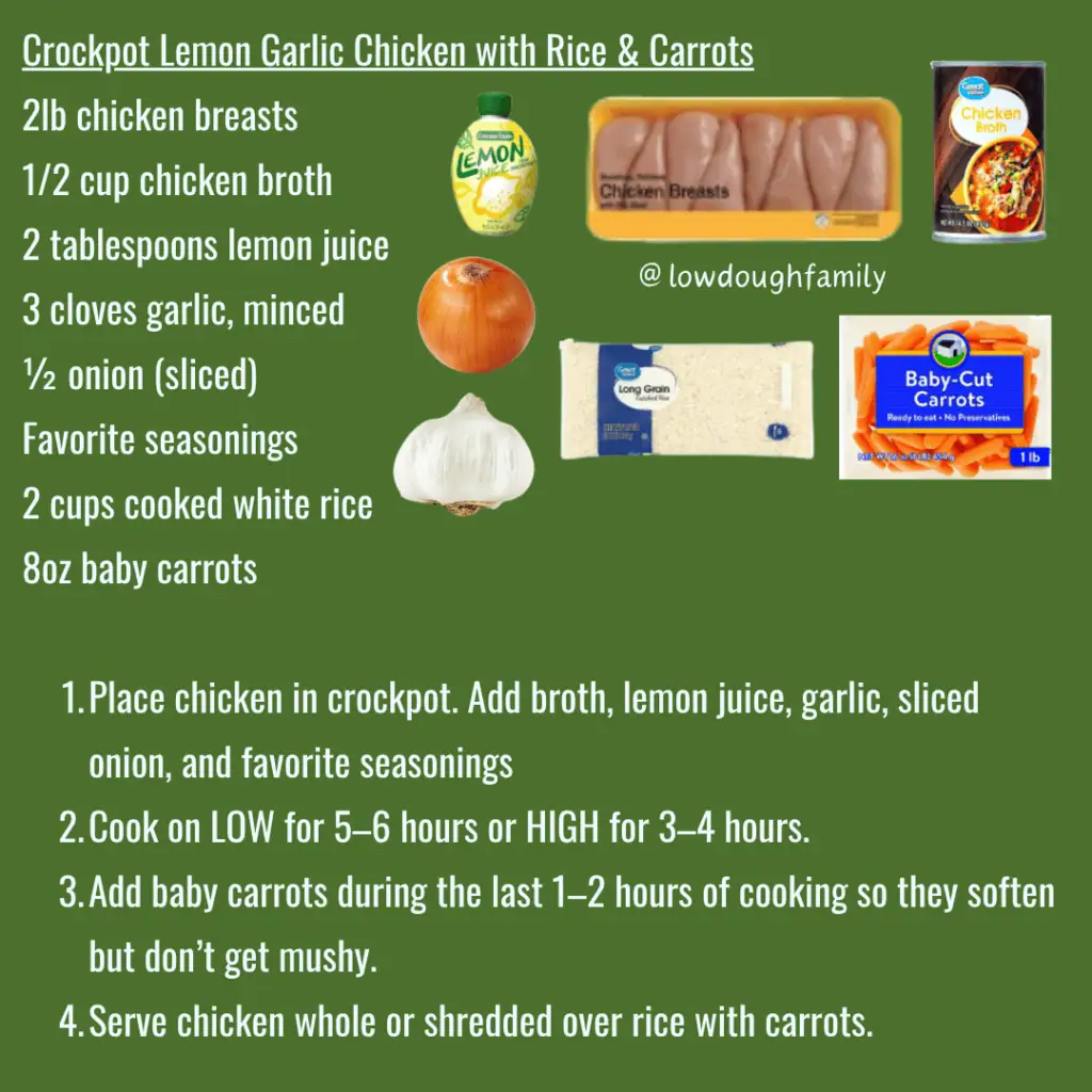 Crockpot Lemon Garlic Chicken with Rice & Carrots