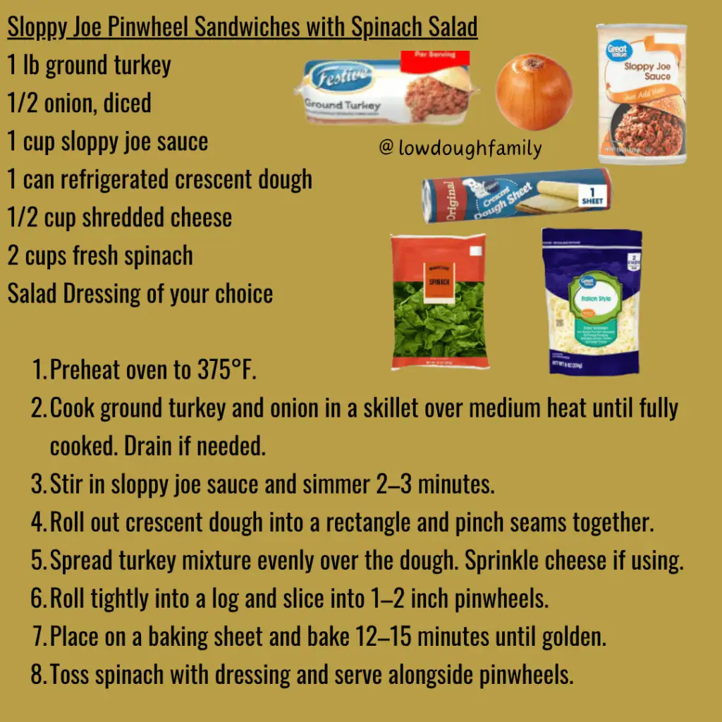 Sloppy Joe Pinwheel Sandwiches with Spinach Salad