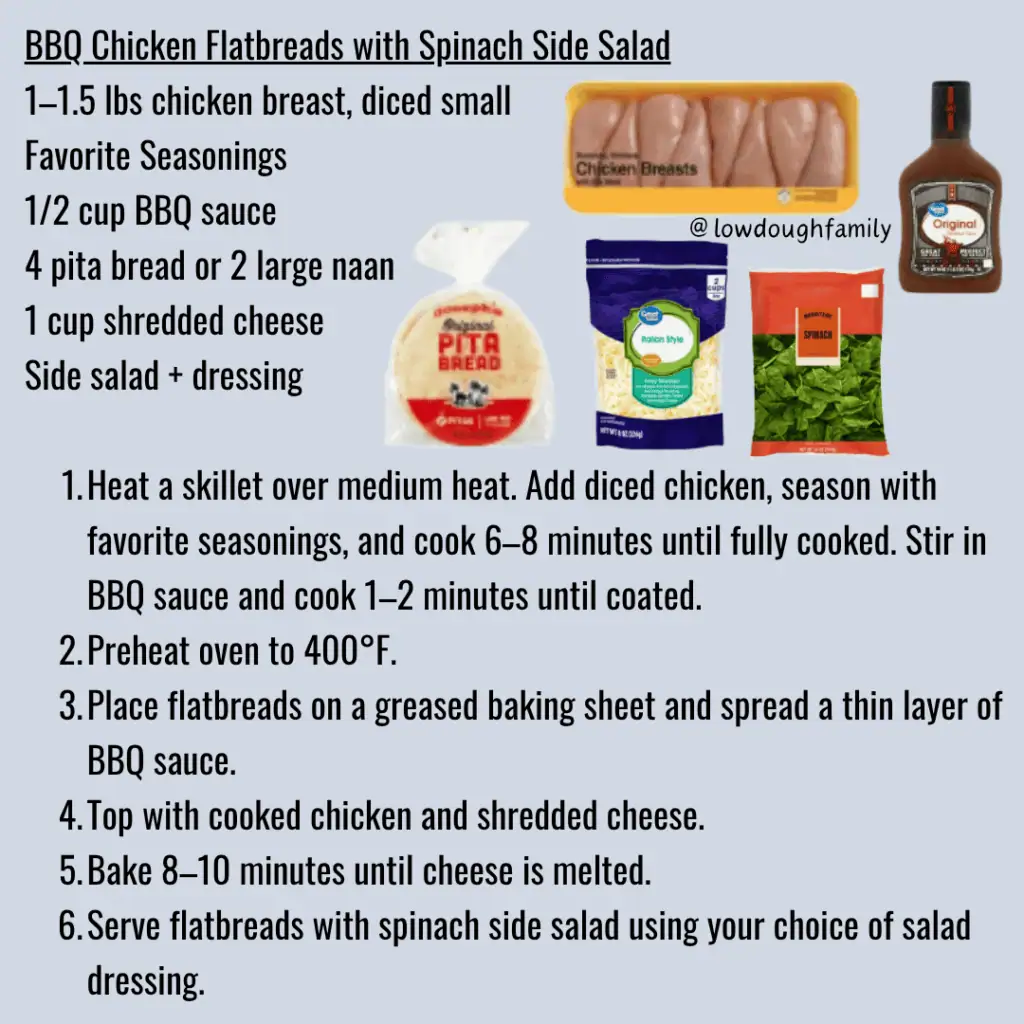 BBQ Chicken Flatbreads with Spinach Side Salad