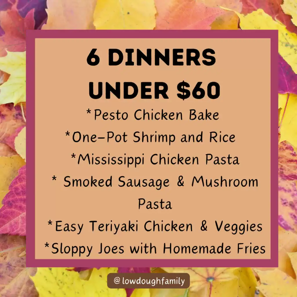 Affordable Meal Plan: 6 Easy Dinners for Under $60 This Week (Menu #81)