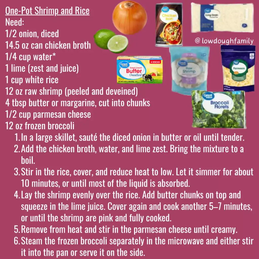 An easy one-pan shrimp dinner that feels fancy but costs very little to make! The rice cooks right in the pan for extra flavor, and a squeeze of lime brightens the whole dish. Try swapping lime for lemon or using mixed vegetables instead of broccoli if that’s what you have.