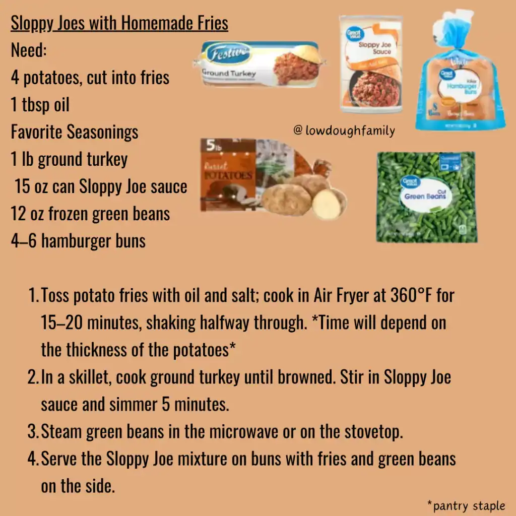 Ground Turkey Sloppy Joes with Air Fryer Fries & Green Beans