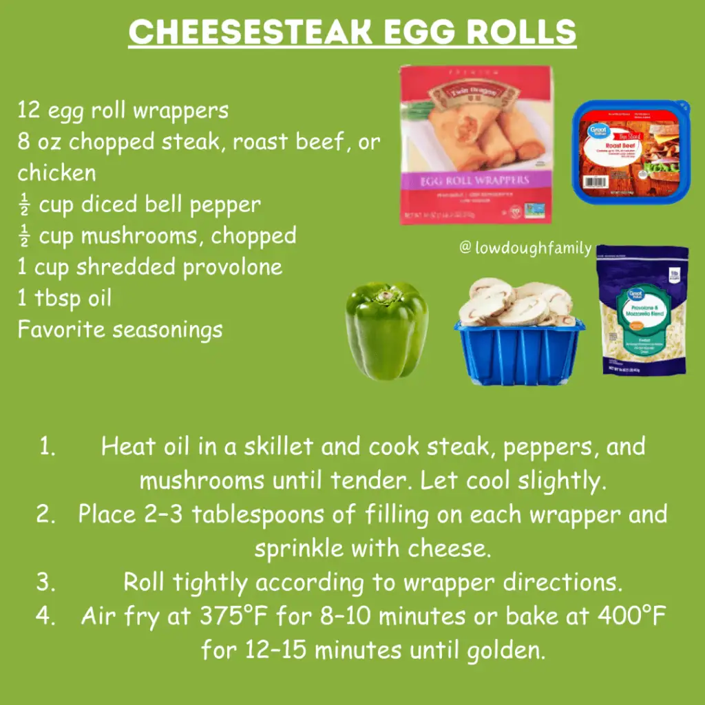 These crispy egg rolls are a fun twist that turns cheesesteak into a handheld snack or dinner. If you don’t have wrappers, you can use tortillas and make them into taquitos instead. Either way, they are really good dipped into sour cream!