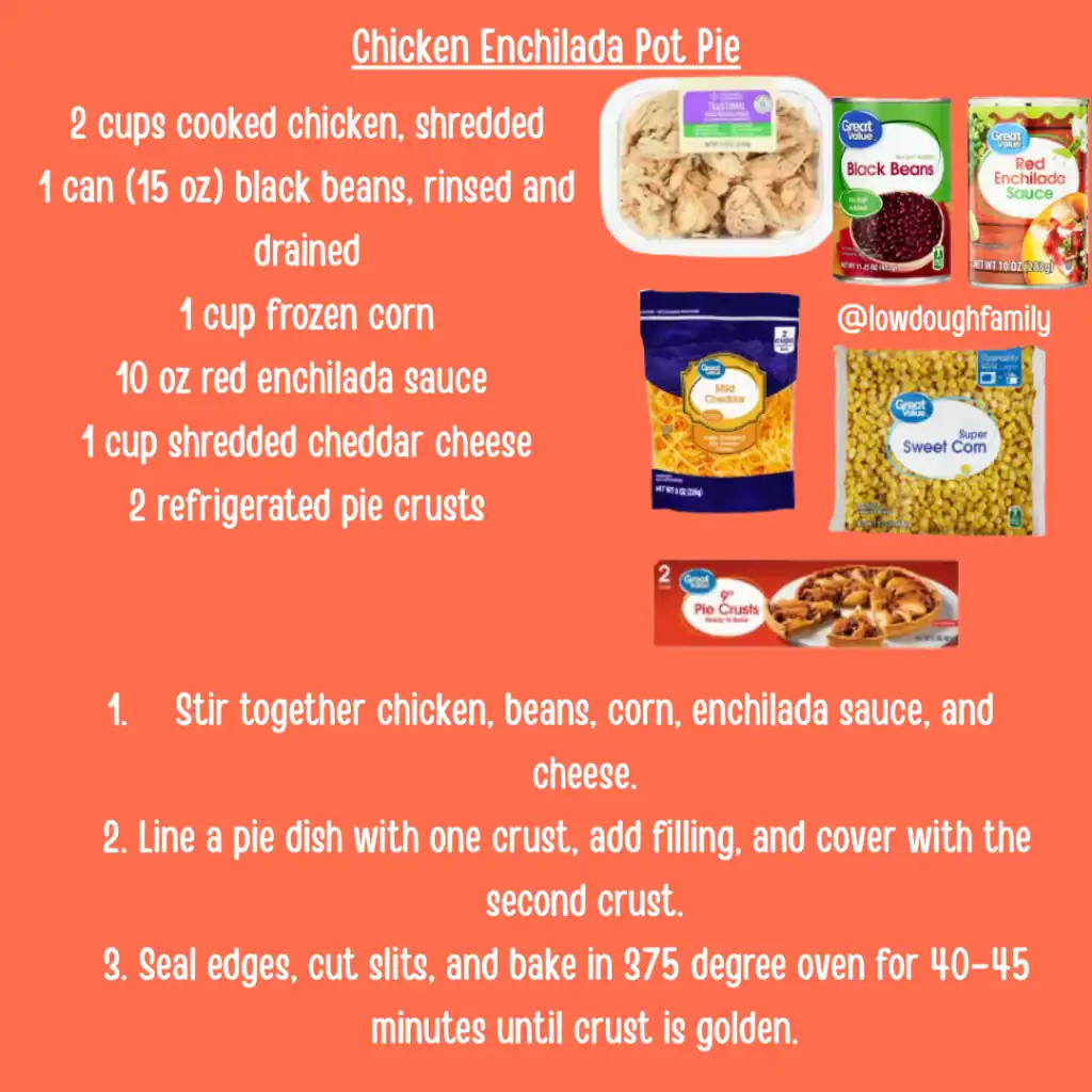 Turn taco night into pot pie night with chicken, corn, black beans, enchilada sauce, and cheese under a golden crust. Use green enchilada sauce for a fun twist on the flavor.