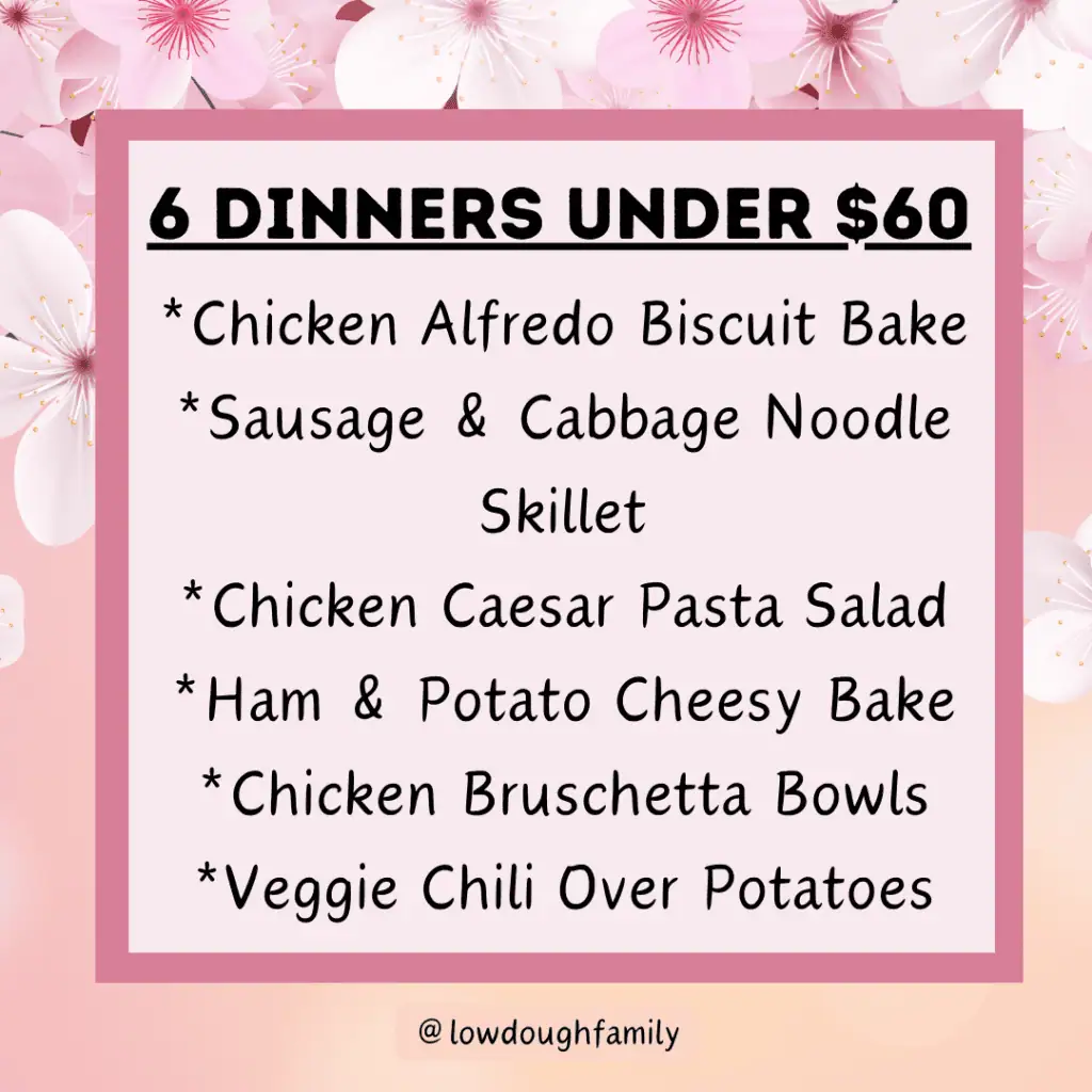 *Join our Low Dough Facebook Page where we post new menus every Saturday and new meal ideas every Wednesday!