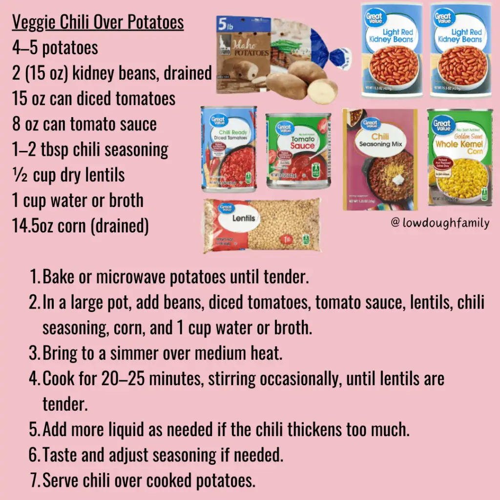 This hearty chili is a great budget stretcher thanks to the lentils and beans. You can use any beans you have, add extra veggies like bell peppers, or mix in cooked ground meat if you want to make it even more filling.