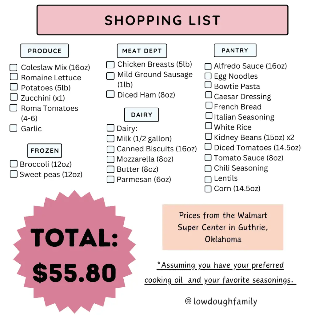 If you want to see the full shopping list on Walmart in your area, all you have to do is click my Walmart Grocery list and change the zip code to your area. *This is an affiliate link, and I do make a small commission on any purchases, but at no additional cost to you!*