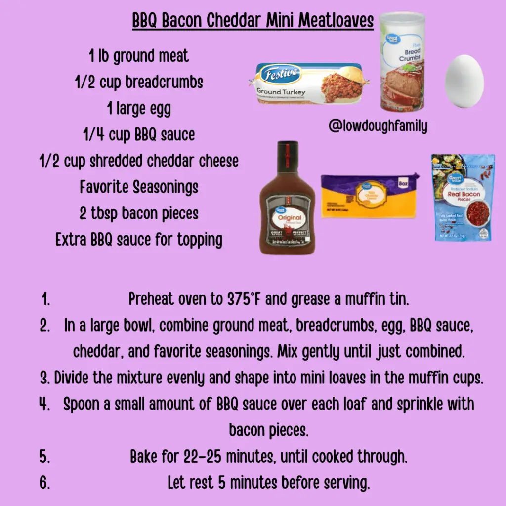 These mini meatloaves are sweet, smoky, and loaded with cheddar cheese, then finished with a simple BBQ glaze. Swap the cheddar for Colby Jack or skip the bacon if you want to keep it simple.