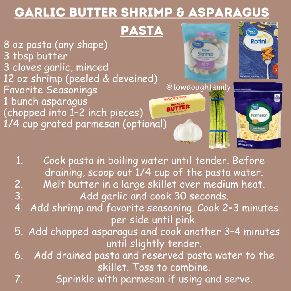 This is a quick, budget-friendly dinner that feels a little fancy without extra work. If shrimp isn’t on sale, you can swap in chicken or even smoked sausage, and cutting the asparagus small helps it cook fast and stretch through the whole dish.