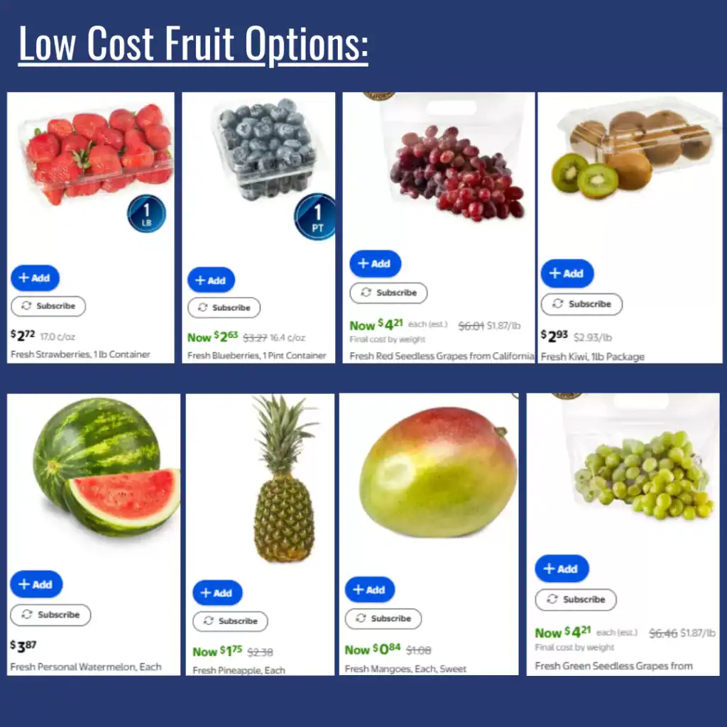 *Walmart is not always the cheapest when it comes to fresh fruits. Lots of local stores run better sales and have fruit as loss leaders, so check your local stores for some better deals if needed!*