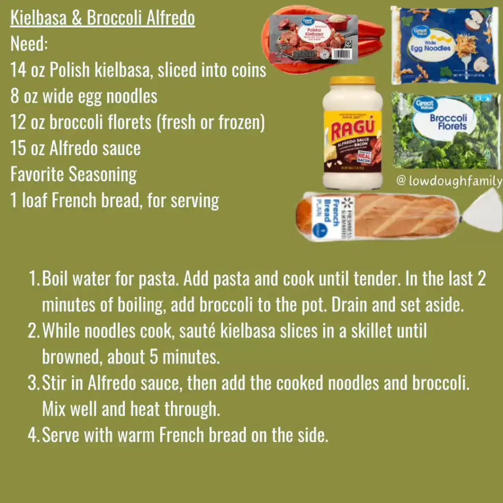 This creamy pasta dish is a quick weeknight win, with smoky kielbasa and broccoli tossed in a rich Alfredo sauce. You can swap in spinach or peas for the broccoli, or try regular pasta if you don’t have egg noodles.
