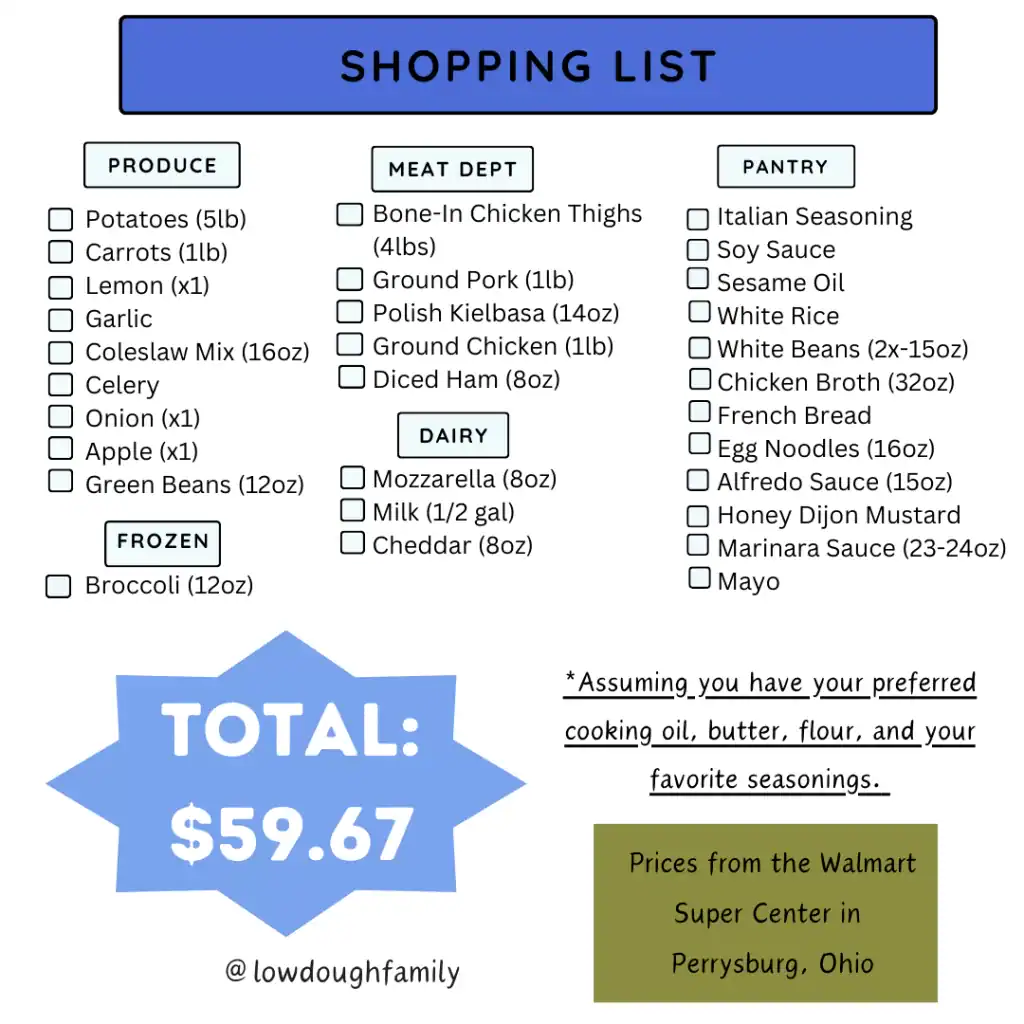 At just $59.67 from the Super Walmart in Perrysburg, Ohio, these meals use simple ingredients in multiple ways to keep costs down and flavors fresh. You’ll also notice Italian seasoning making several appearances. It’s one of the best all-purpose blends to keep in your pantry. Of course, you can swap it out for other spices you love, but it’s a great base for everything from roasted chicken to baked casseroles.