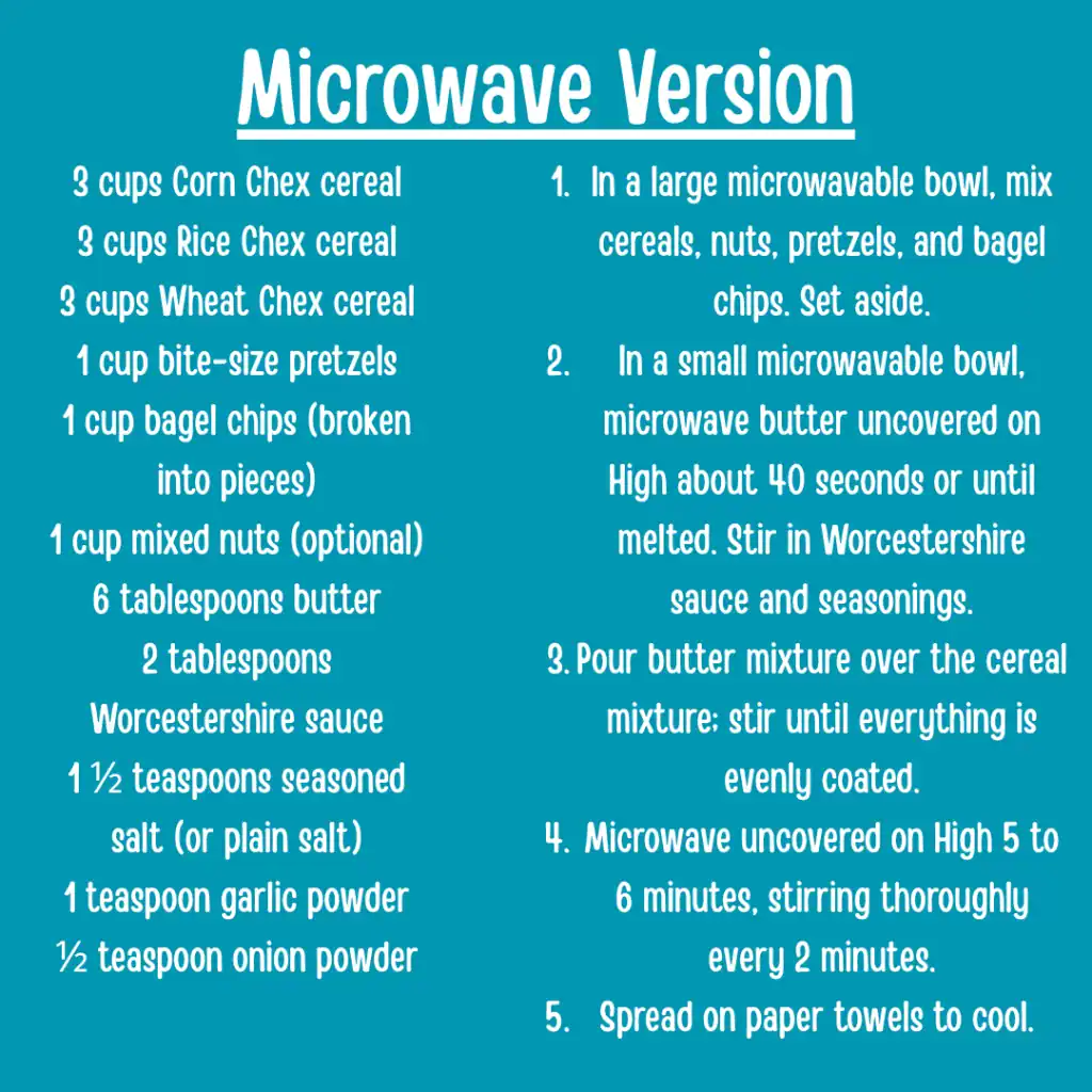 Did you know you can actually make Chex Mix quickly in your microwave? No more baking at a low temperature for an hour!