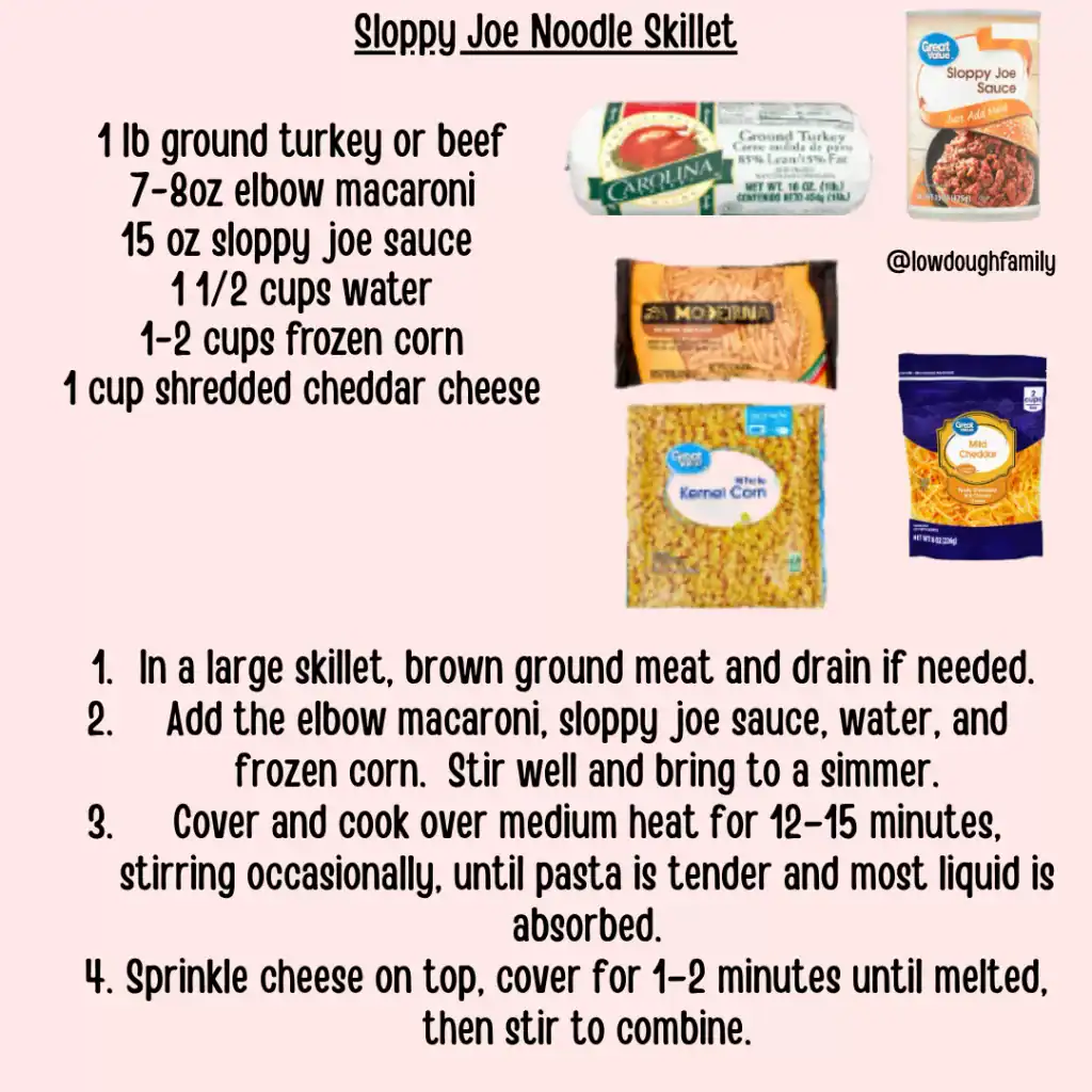 This fun twist on sloppy joes uses elbow noodles instead of buns and adds sweet corn for a pop of flavor and texture. It’s a budget win and a kid favorite. Try mixed veggies instead of corn, or top with a little shredded cheese and crushed crackers for an easy crunch.