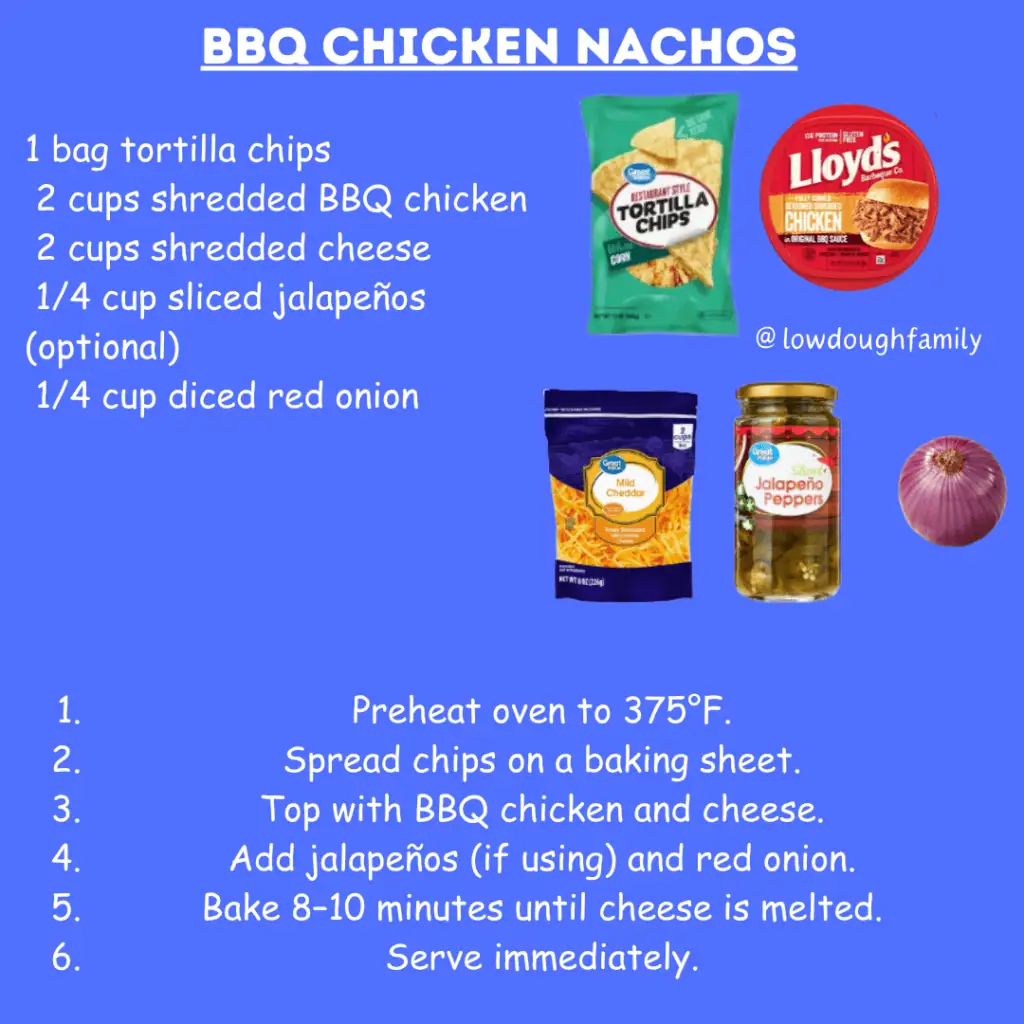 Perfect for a quick dinner or snacky night. Use whatever chips you have on hand, and layer twice if you want every bite to be loaded with chicken and cheese.