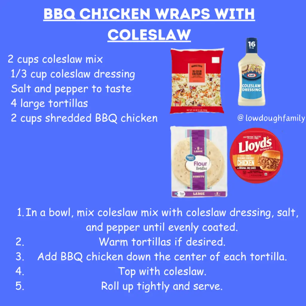 A fresh, crunchy option that balances the richness of the BBQ chicken. Use store-bought coleslaw dressing to keep it quick, or swap in a broccoli slaw mix for something different.