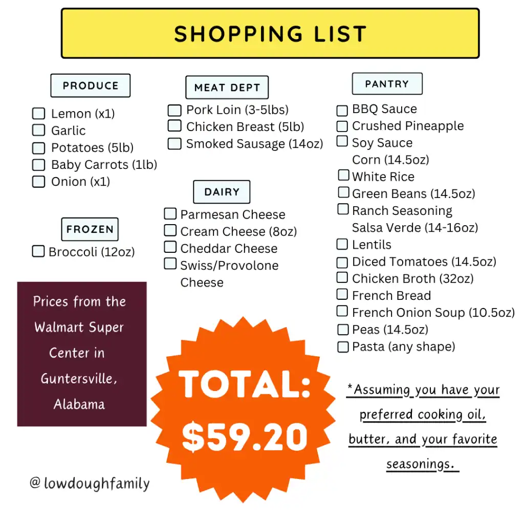 *Join our Low Dough Facebook Page where we post new menus every Saturday and new meal ideas every Wednesday!
