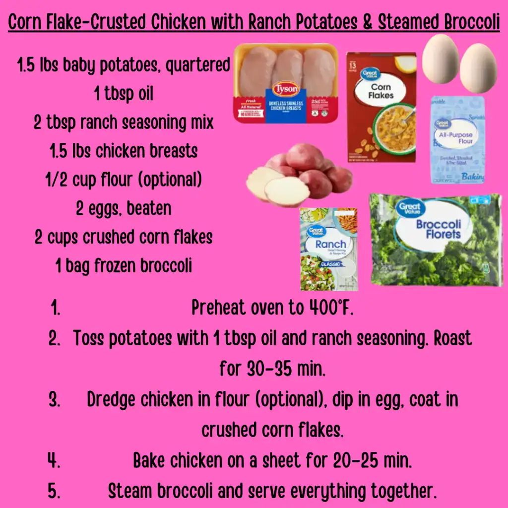 Corn Flake-Crusted Chicken with Ranch Potatoes & Broccoli