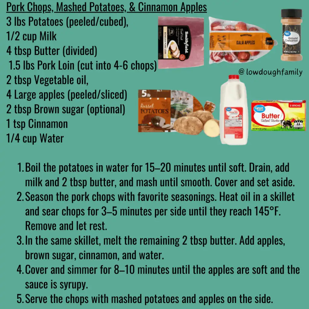 Pork Chops, Mashed Potatoes, and Cinnamon Apples