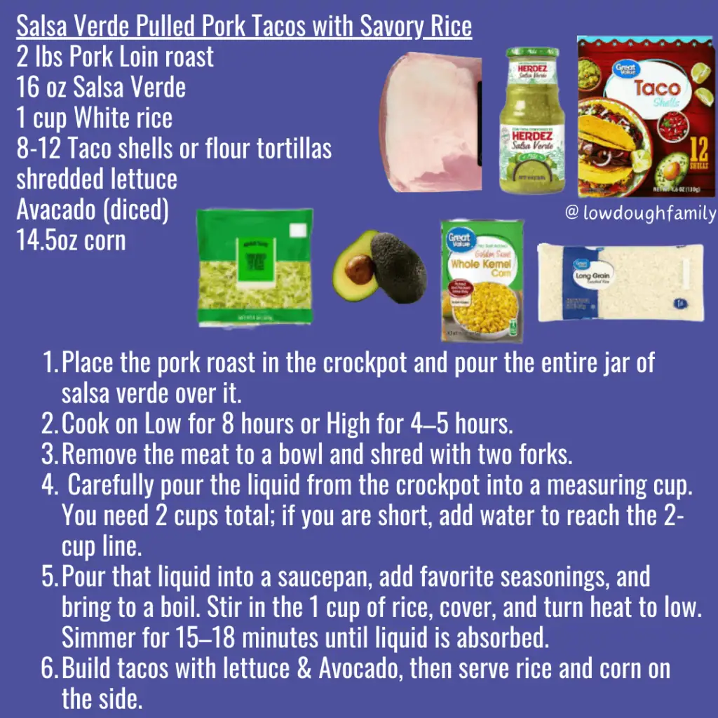 Salsa Verde Pulled Pork Tacos & Savory Rice