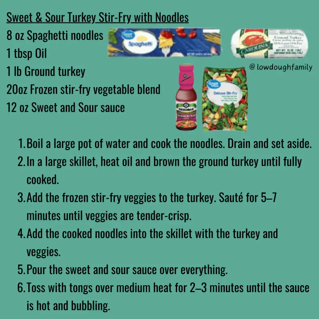 This quick skillet meal balances sweet, savory, and veggie-packed goodness in one pan. Ground pork or chicken works just as well as turkey, and ramen or rice noodles can replace spaghetti noodles in a pinch.