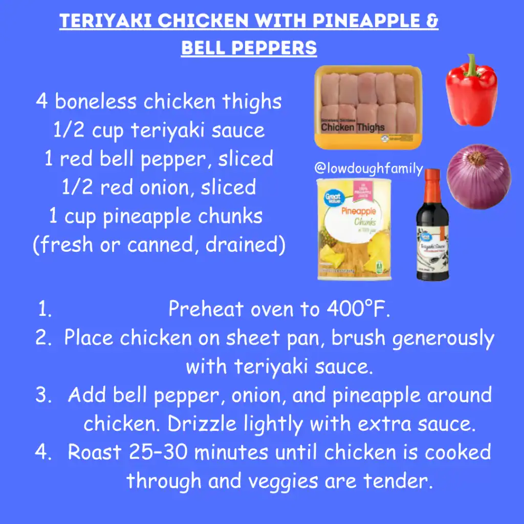 This sweet-savory combo of teriyaki chicken, pineapple, and bell peppers is always a family favorite. Use canned pineapple, frozen peppers, or even swap the sauce for sweet chili or orange sauce.