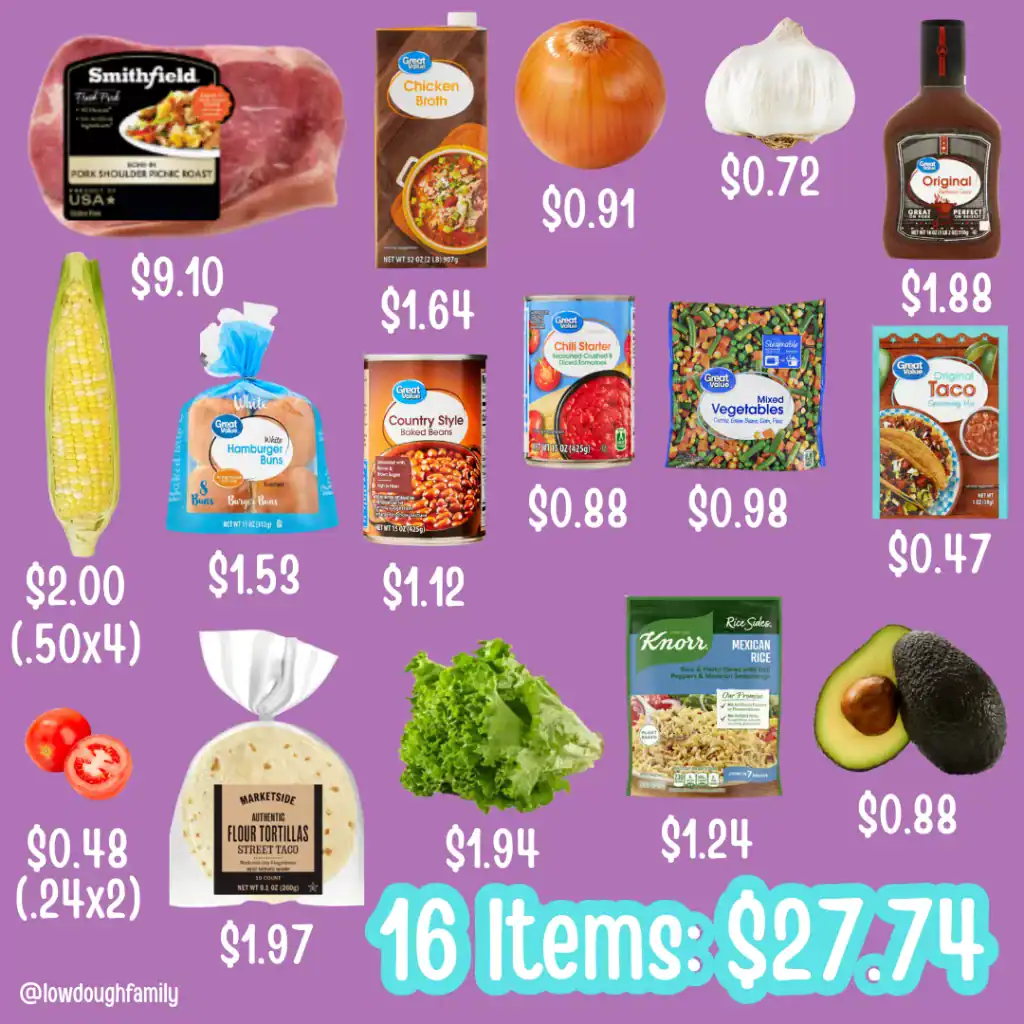 And the best part? The whole meal plan cost just $27.74 for a total of 16 ingredients!
