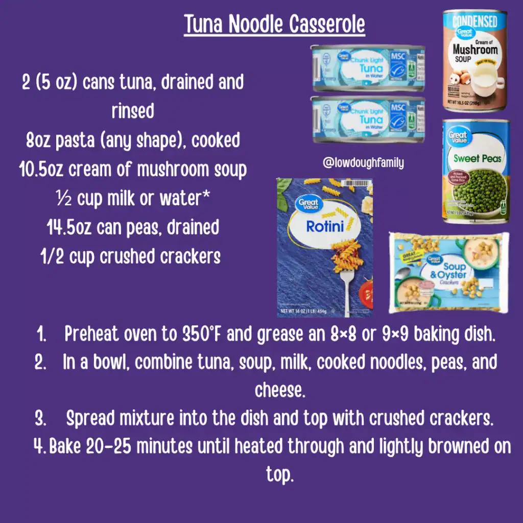 So, this week, I wanted to go back to basics. These three dinners use common food pantry staples like canned chicken, tuna, and canned veggies. We can make simple, filling meals your family will actually enjoy with these items.