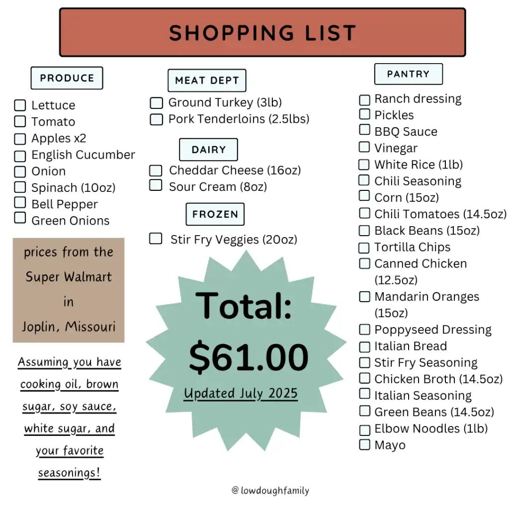 Realistic Low Effort Summer Meal Plan for under $60 (Week #24)