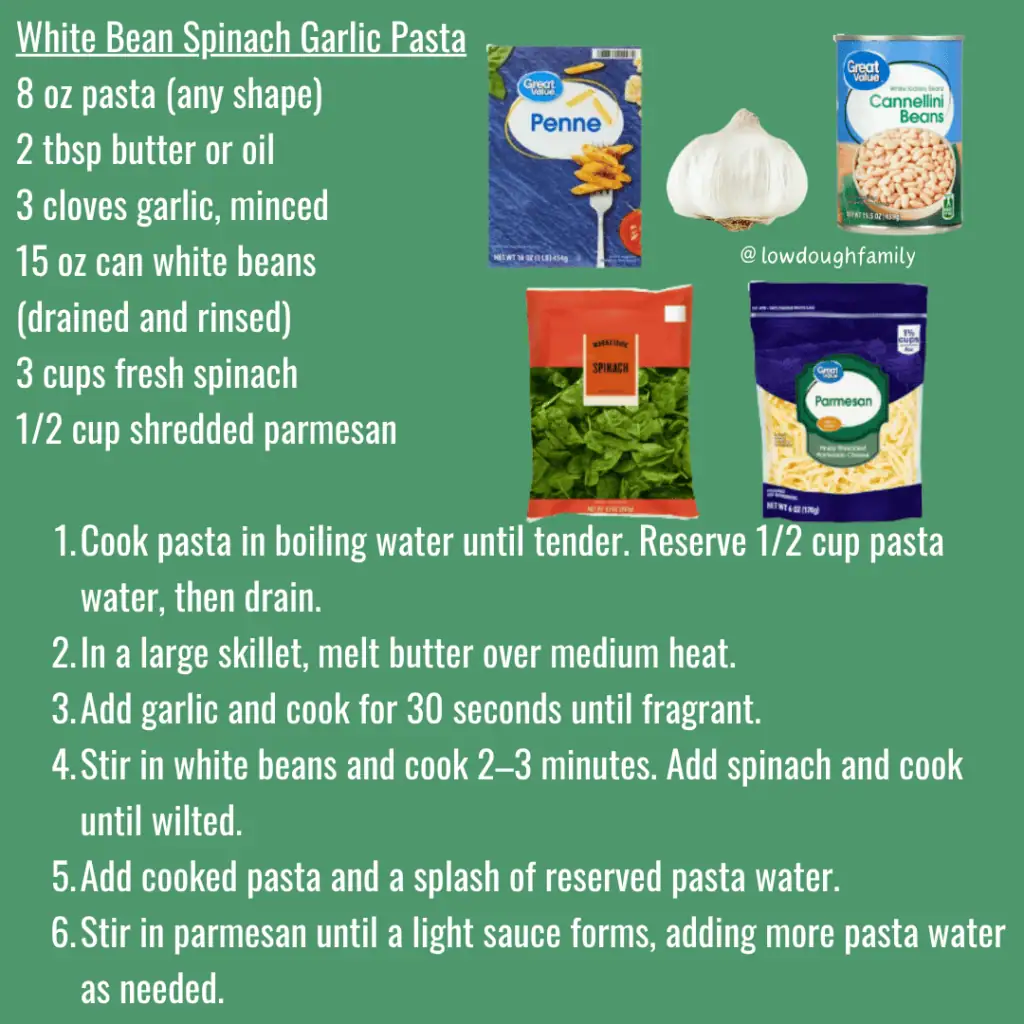 White Bean Spinach Garlic Pasta