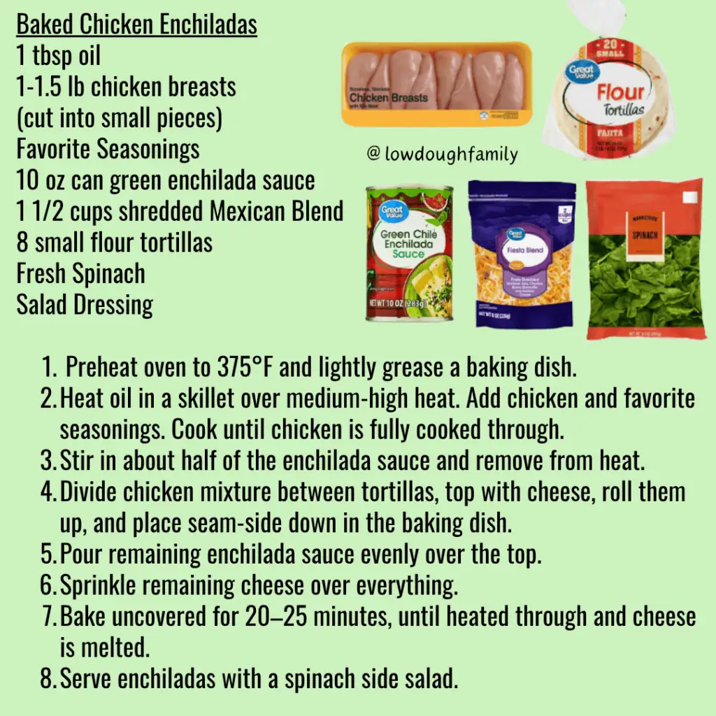 These cheesy enchiladas come together quickly with simple ingredients and a flavorful green sauce. For a creamier filling, mix a few ounces of cream cheese into the chicken before rolling. A Mexican blend cheese melts well here and keeps things simple and budget-friendly.