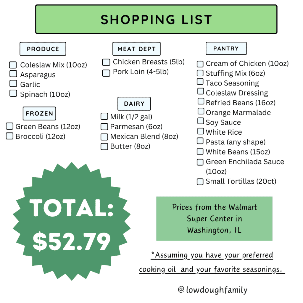 *Join our Low Dough Facebook Page where we post new menus every Saturday and new meal ideas every Wednesday!