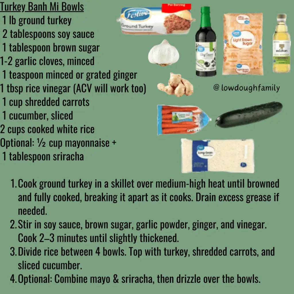 Savory ground turkey served over rice with fresh carrots and cucumber for a balanced bowl. Add sliced jalapeños for heat, swap turkey for ground chicken, or use lettuce cups if you want a lower-carb option.