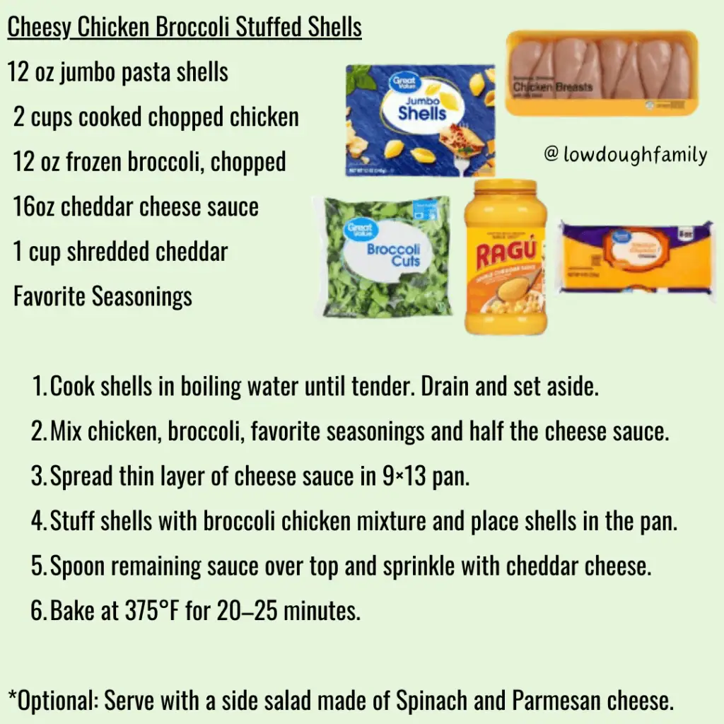 Tender pasta shells stuffed with chicken, broccoli, and creamy cheddar sauce for a comforting baked dinner. You can add a little cooked bacon for extra flavor or swap broccoli for frozen mixed vegetables if that’s what you have.