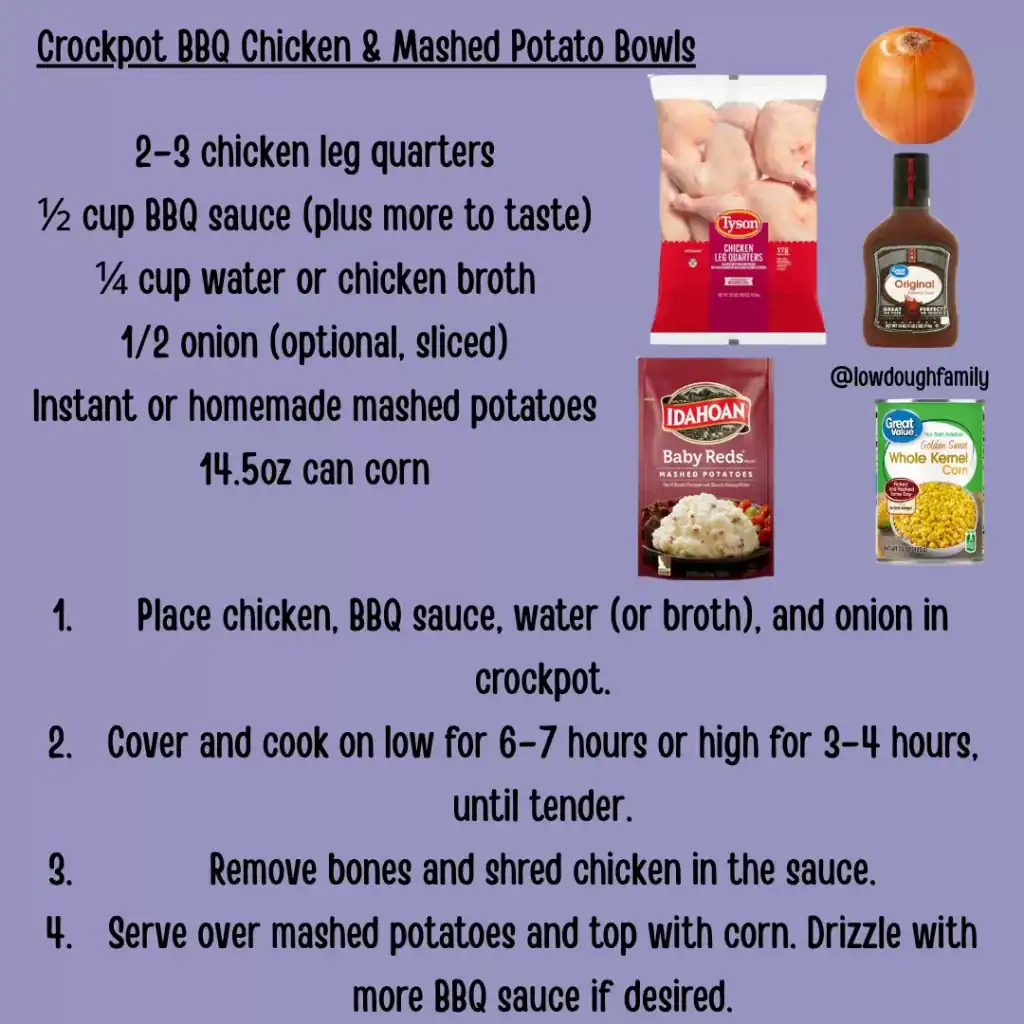 Crockpot BBQ Chicken & Mashed Potato Bowls