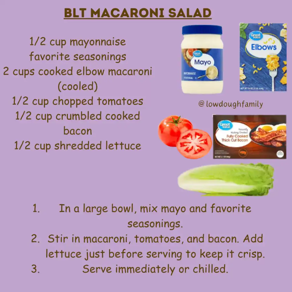 Who doesn’t love a good BLT? Well, this twist on flavors is perfect for a cookout or a potluck. This can also be a great leftover buster if you add any veggies just hang out in your fridge!