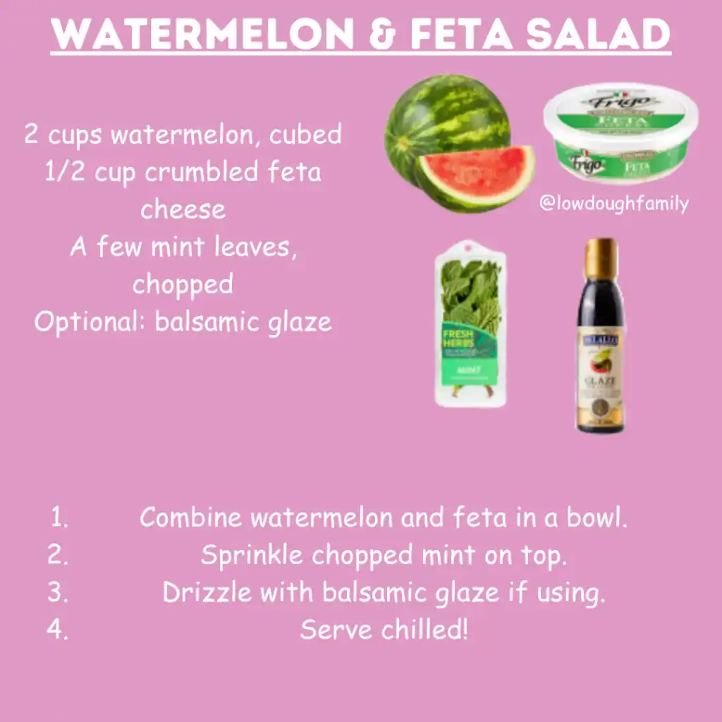 A refreshing mix of sweet watermelon, salty feta, and fresh mint that’s perfect for hot days.